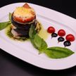 200 г • Баклажан, помидор, сыр моцарелла, соус «Песто», базилик, помидоры черри